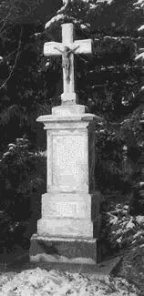 De style du 19ème siècle, la croix est assez trapue. Elle porte une inscription simple, qui était à ce moment‐là, en partie cachée par un buisson de roses : « Errichtet zur Ehre Gottes durch André JUNG und Anna Maria FERSING » ‐ 1830 André né en 1772, épousa le 1er mai 1798, Anna Maria, née en 1778. Lui, était l’arrière‐grand‐père paternel de Marie JUNG (1897‐1980) épouse de Joseph SPOHR (1894‐1976).