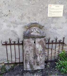 La grille qui l’accompagne, a été trouvée en 2002, pendant le nettoyage de l’arrière de la maison. Elle devait probablement entourer le calvaire. (La stèle est visible lors des visites de la maison lorraine).