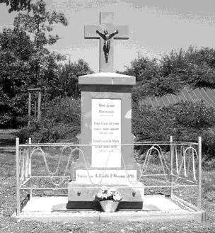 Elle avait été érigée vers 1920 à la mémoire de son grand‐père, mort en Russie en 1915. Elle comporte les inscriptions suivantes “Erigée en l’honneur de DIEU et à la mémoire de Jean Pierre JUNG, mort en Russie au champ de bataille le 20 septembre 1915. Veuve JUNG et ses enfants”. “Mon Jésus, miséricorde”. Marie TONI, veuve de Jean Pierre JUNG, épousa en 2e noce, Joseph LORSUNG (Maire de 1945 à 1947).