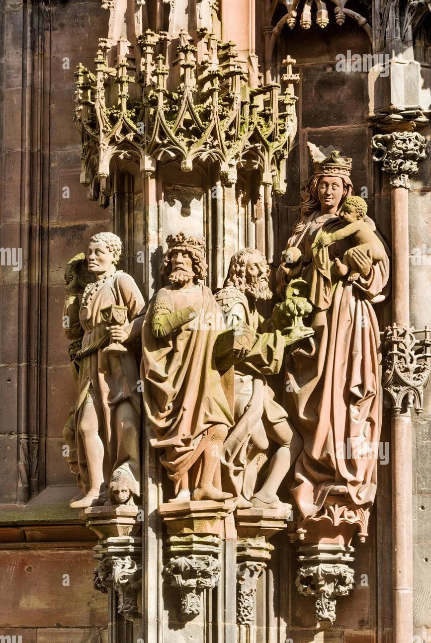 En 1828, il a restauré le portail du Jugement dernier (situé au transept sud, face au palais des Rohan), y sculptant un buste du Christ en majesté (7 pieds) et le groupe du Jugement de Salomon (roi Salomon flanqué des deux femmes revendiquant un enfant), avec un dais évoquant la Jérusalem céleste