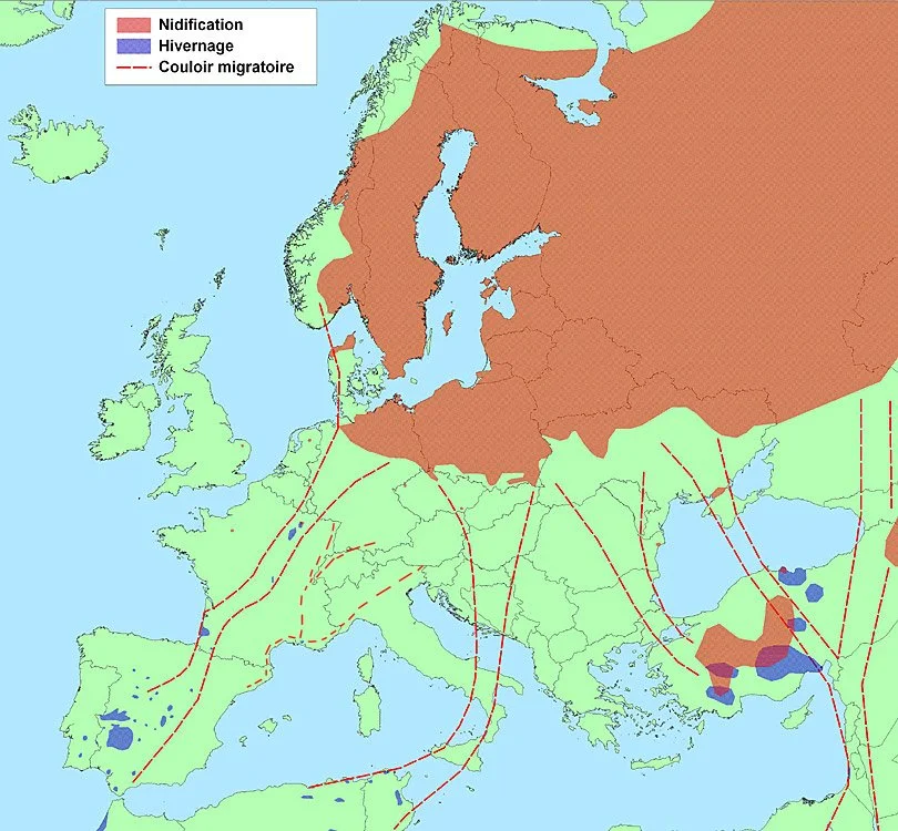 Les zones de reproduction de nos grues s’étendent du nord de l’Europe jusqu’à la pointe de la Russie.
