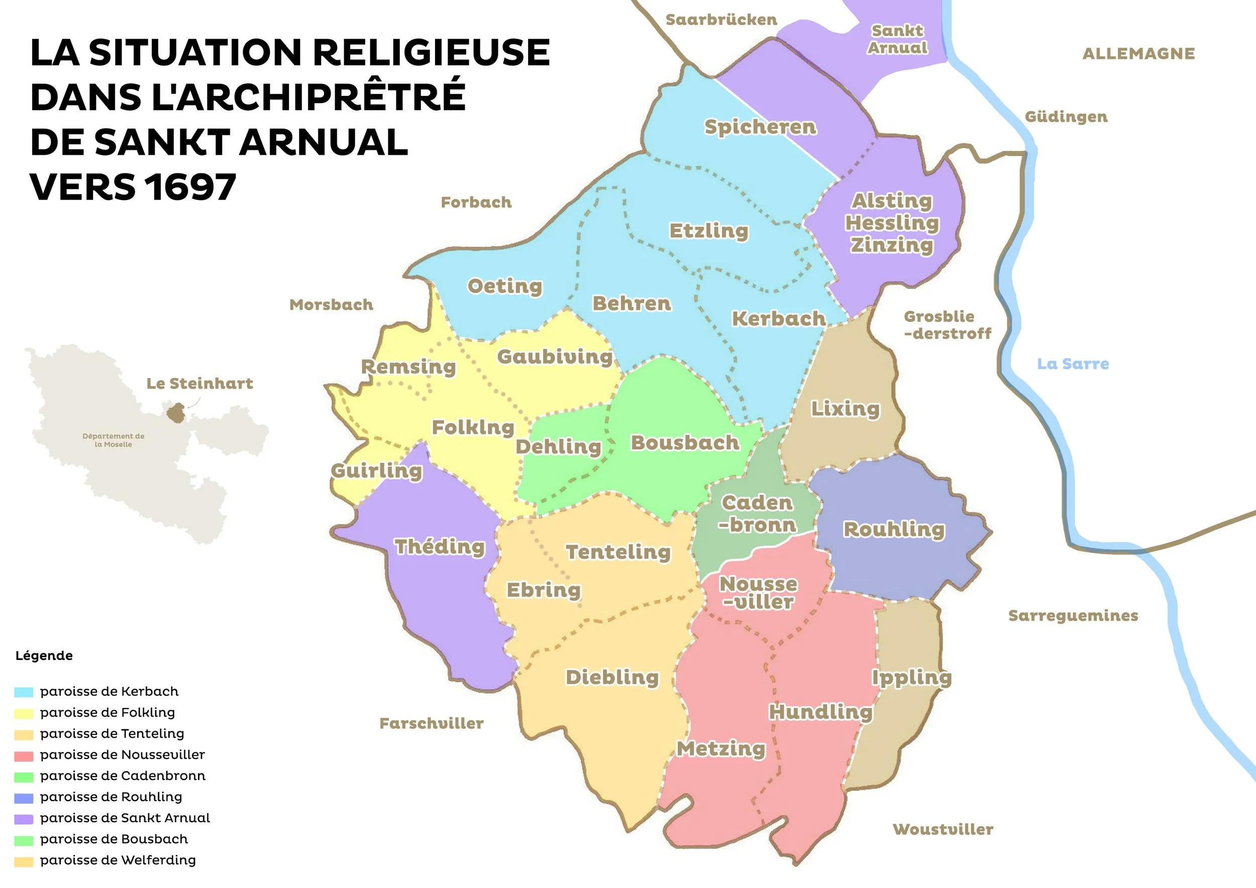 Durant cette même période 9 paroisses se partageaient le Steinhart (plus quelques villages situés hors du Steinhart).
