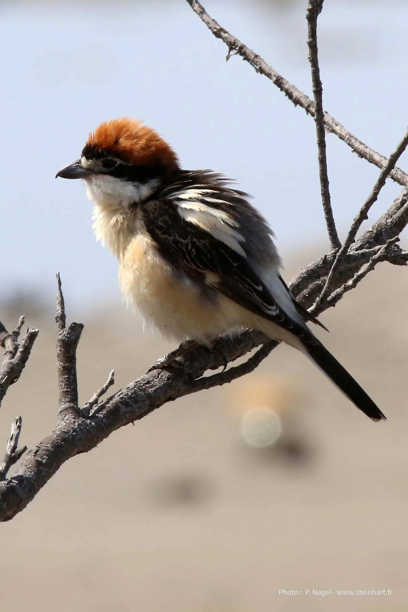 Petit passereau élégant et contrasté, véritable bijou du printemps. Le mâle en plumage nuptial est spectaculaire, front blanc éclatant, masque noir, poitrine et ventre d’un orange vif, dos gris et queue rousse flamboyante. La femelle plus discrète, présente des teintes brunes et roussâtres, et garde la queue rouge caractéristique de l’espèce.