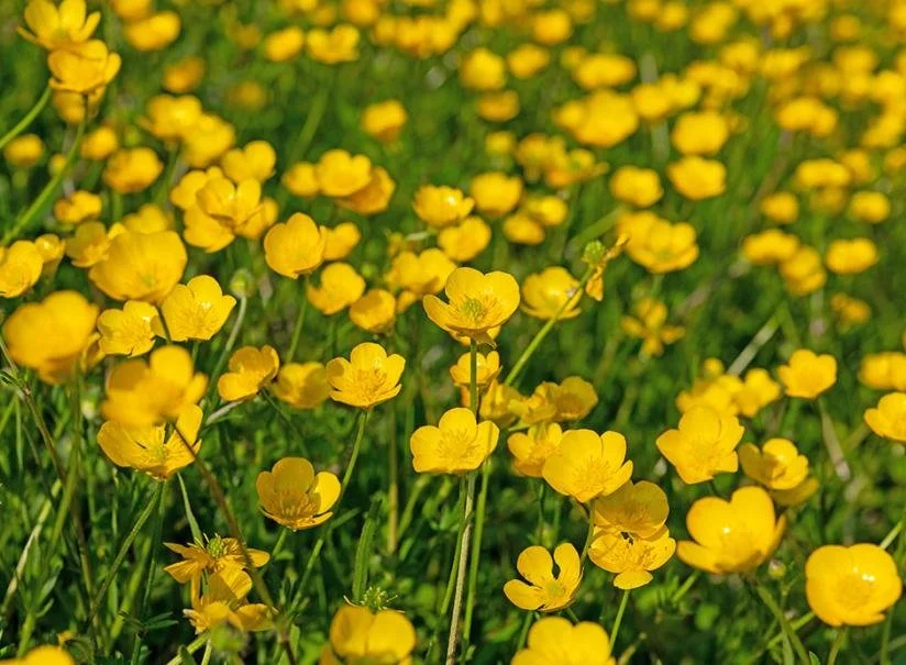 Le Bouton d’or est une plante herbacée vivace emblématique des prairies fraîches et des prés fleuris. Facilement reconnaissable à ses fleurs jaune vif aux pétales brillants, il apporte une touche éclatante au paysage dès le printemps et tout au long de l’été.