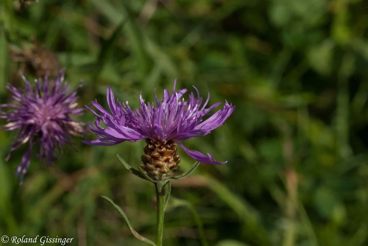 La Centaurée jacée est une plante vivace des prairies sèches, lisières et bords de chemins. Elle mesure entre 30 et 70 cm de haut et se reconnaît à ses fleurs en capitules denses, rose violacé, parfois mêlées de blanc.